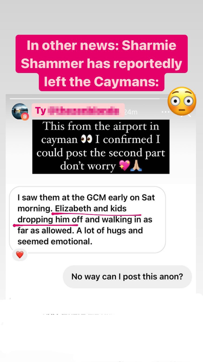 Hammer's supposed arrival at the Grand Cayman airport was first reported on social media by a witness, who said they saw the actor walking with his estranged wife, Elizabeth Chambers, and their two children.