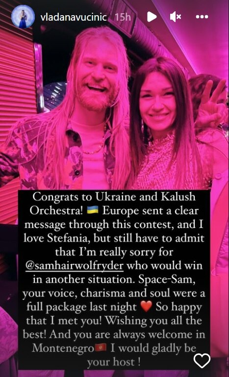 Ukraine's win signifies not only that Kalush Orchestra are "incredible artists", wrote Iceland's entry, Systur, but "receiving the majority of the tele votes also tells us that the people of Europe stand with Ukraine, that we all want peace".