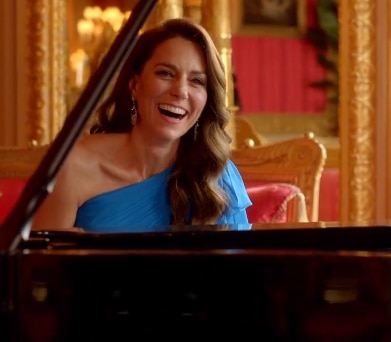 The Princess of Wales was featured in the video with last year's winners, playing piano in a blue dress.
