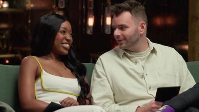 Lauren is a giggling mess on the couch, but they hit a bit of a bump when Jono says he's looking for "deep emotional conversations" while Lauren finds them "horrific".