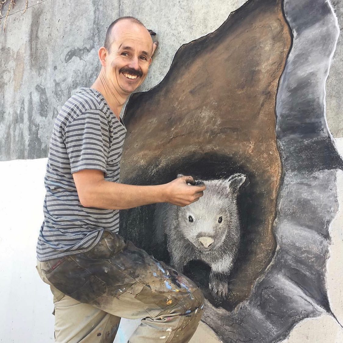 When the ex-chef took chalk to the side of a bridge six years ago, he never could have imagined where his marsupial mural would lead him.